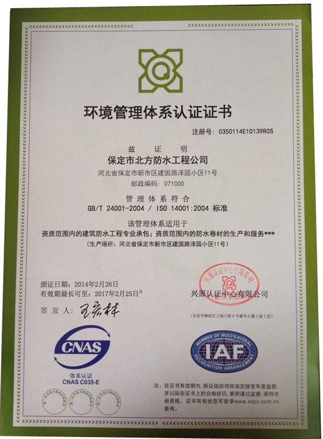 • 環(huán)境管理證書