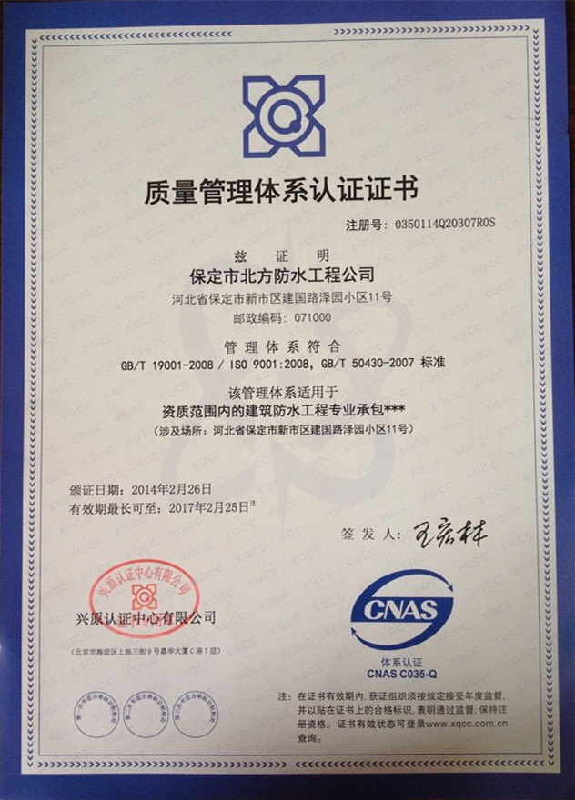 環(huán)渤海地區(qū)防水行業(yè)誠信企業(yè)